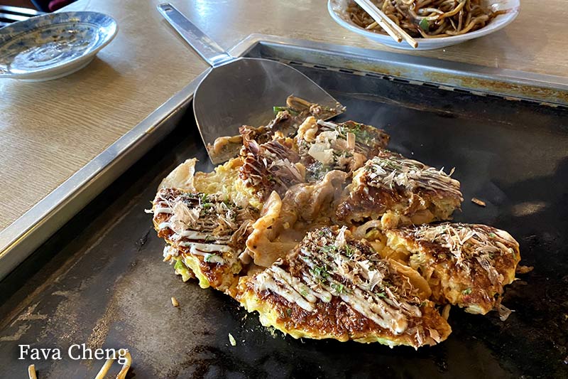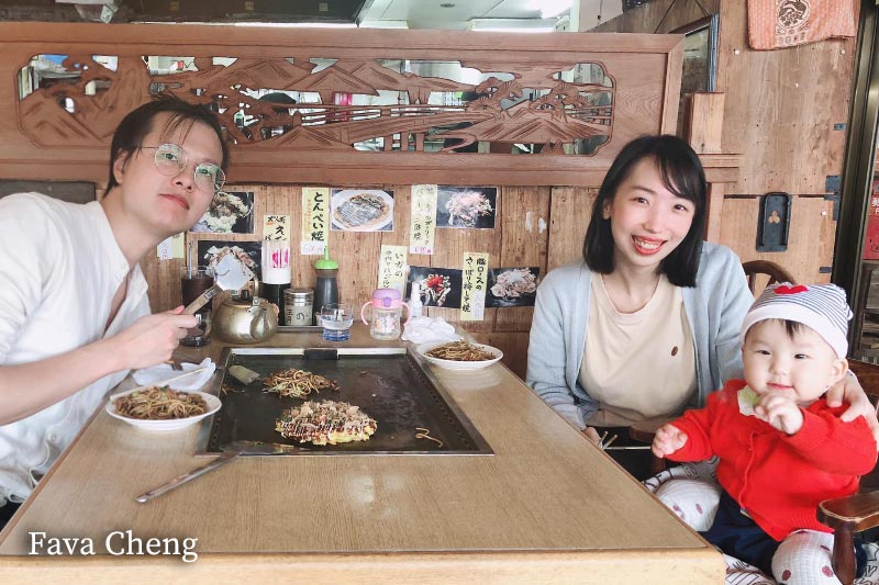 逛了一會便找了間主打御好燒的餐廳「お志乃」休息。店內餐桌雖附有鐵板,不過其實只作保溫用,實際是由店員煎好送餐,因此帶著小朋友也不怕弄得手忙腳亂,而味道算是不過不失,一貫日本家庭料理水準吧。
